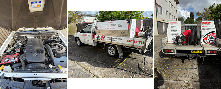 20 litre water tank under tray with soap dispenser. Toolboxes on ute and under tray.